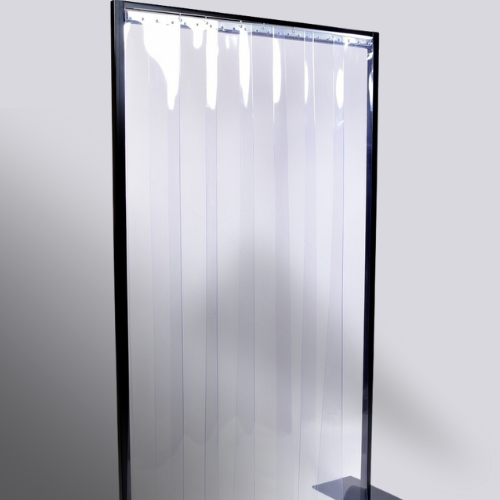 Industry Standard Most Common Most versatile PVC strip door that will withstand pedestrian traffic and also accommodate the person walking with the hand truck. An effective plastic strip barrier, right in the middle in terms of effectiveness and ease of access.